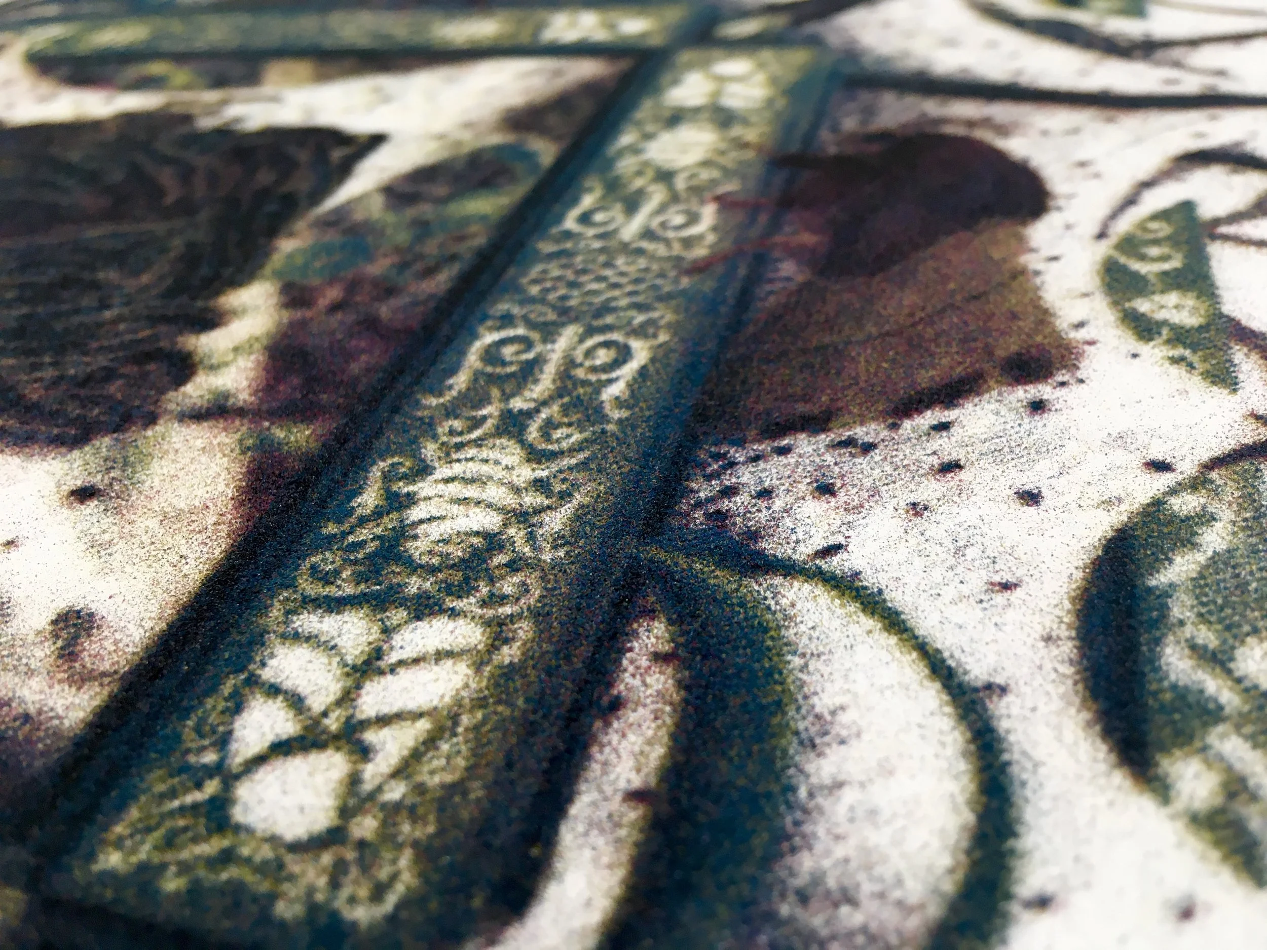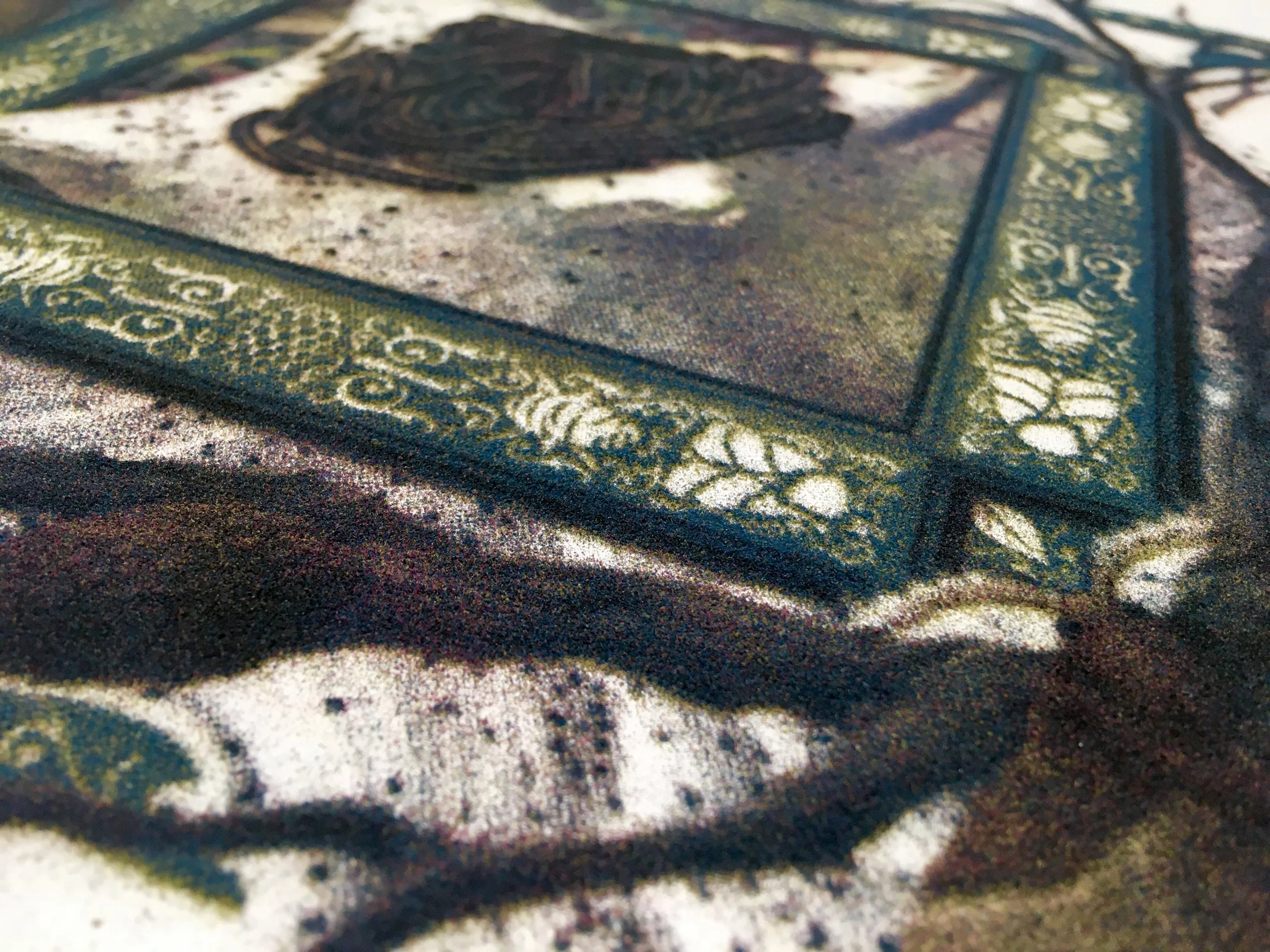 Epiphany (detail), 2023, Dyed floor dust filtered through silkscreen