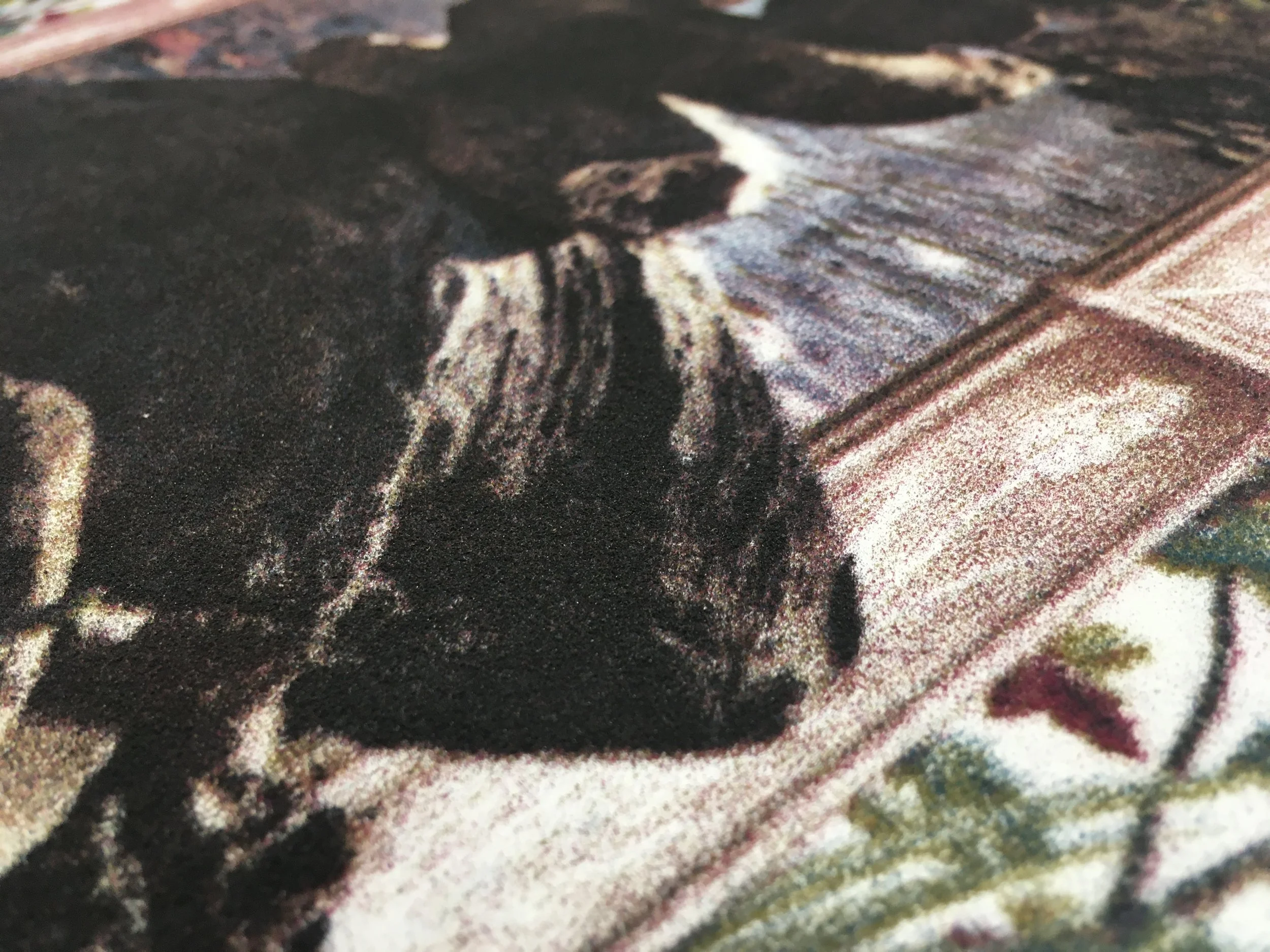 Mop (detail), 2023, Dyed floor dust filtered through silkscreen